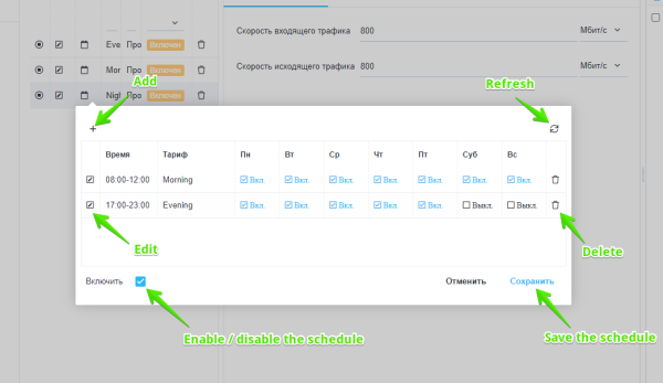 Edit the schedule of the tariff plan
