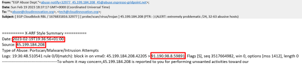 The abuse email usually contains a global address from a NAT pool. We need to understand which of the subscribers went to the resource where the virus activity was detected at a known time behind this NAT-pool.