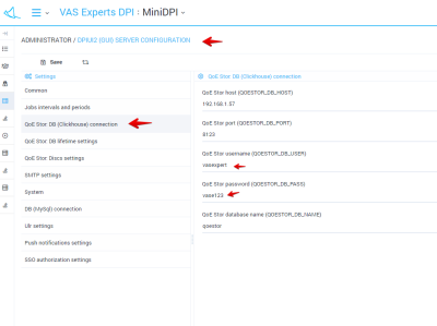 In dpiui2, in the configuration section, set the username and password for connecting to the ClickHouse database
