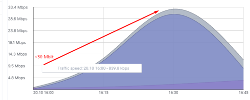 - Measure traffic peaks. Peaks should not exceed the configured maximum value. Measurement can be done using an external service or the built-in "Traffic speed" widget in the QoE dashboard.