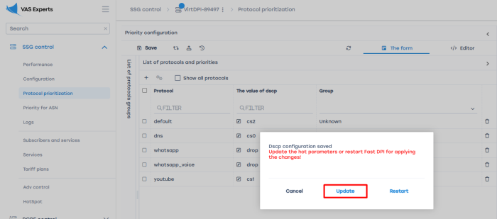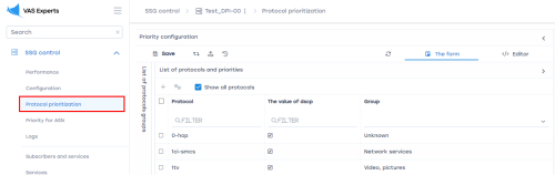 - Configure priorities. Go to DPI Management → Protocol Prioritization