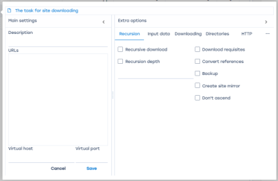 - Recursive loading. If the user needs all the links contained on the cloned site, then it is necessary to check the box in this cell.
