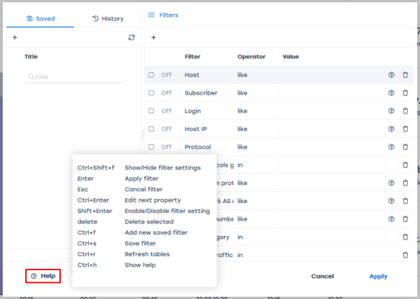 Also added hotkeys for working with reports and filters. The full list can be viewed by clicking the Help button in the Filters window: