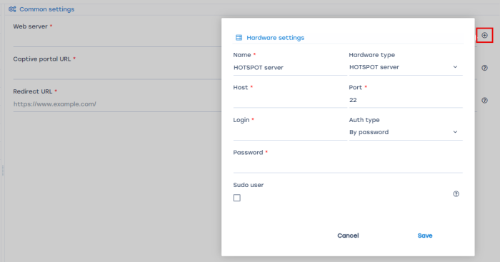 If the corresponding equipment is not available, add it using the "Add New Device" button. A form for creating a new device will appear; in it, create a device with the "HOTSPOT server" type.