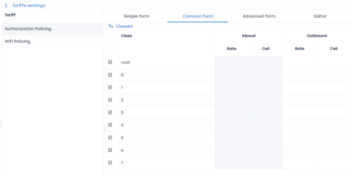 This form allows configuring tariff plan parameters applicable to subscribers during Wi-Fi authorization. The tariffs in the form correspond to the following names on the DPI: