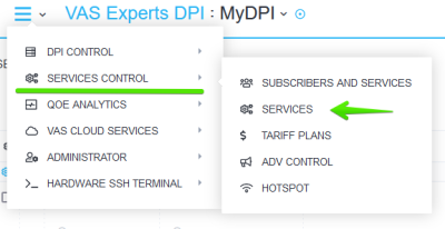 To go to the section, open the Service management menu and click "Services".