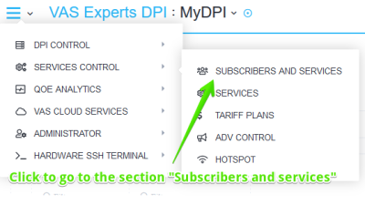 To go to the section, open the Service management menu and click "Subscribers and services".
