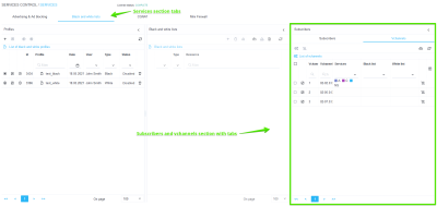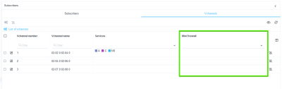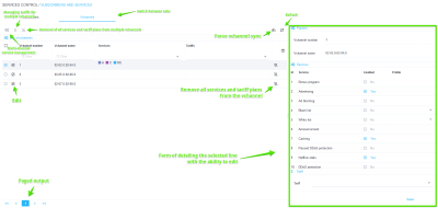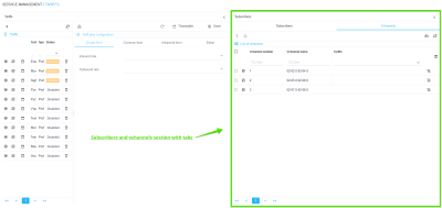 - Viewing the list of subscribers and vchannels, as well as connected services with the ability to filter