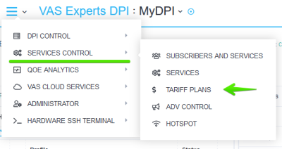 To go to the section, open the Service management menu and click "Tariff plans".