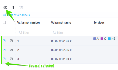 It is possible to connect and disconnect services to several vchannels at once. To do this, select several lines (using ctrl or shift) and click the Services button.