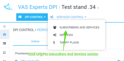 To go to the section, open the SERVICES CONTROL menu and click on "SUBSCRIBERS AND SERVICES".
