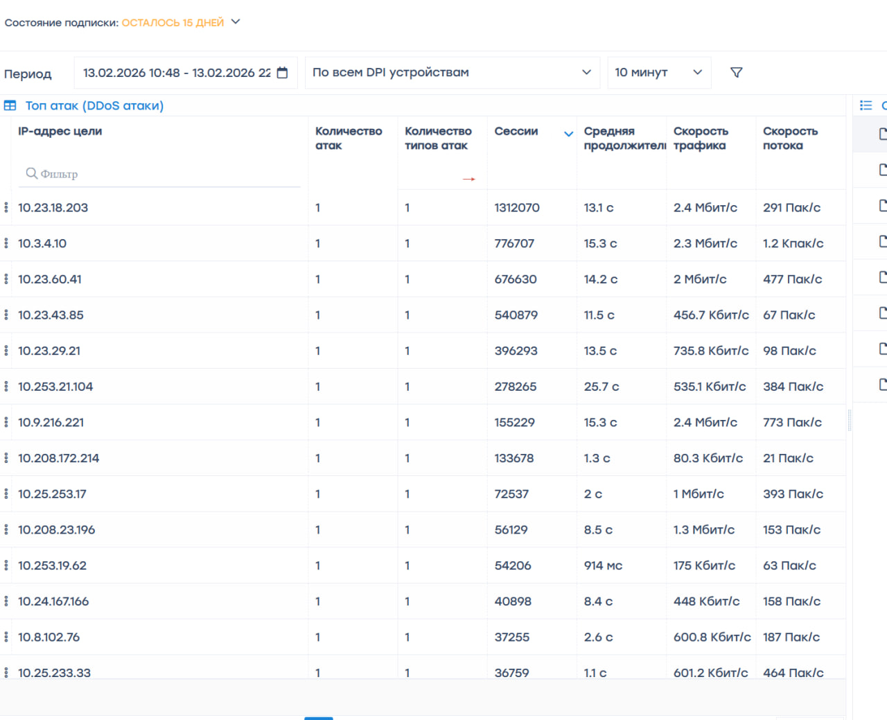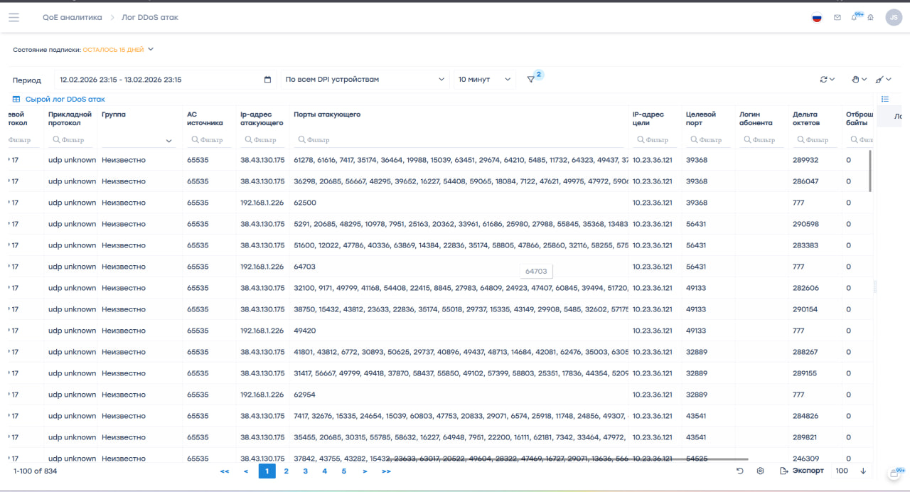 The detector allows automatic monitoring of incoming traffic, identifying DDoS attacks, and quickly taking measures to protect the network. When a threat is detected, the system can fully isolate the malicious stream or clean the traffic while maintaining service availability for users.