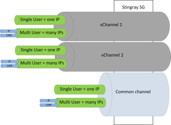 If the Stingray SG has other network interfaces specified in the in_dev/out_dev setting, the traffic through them will refer to the common channel, which is managed and limited in the configuration file.