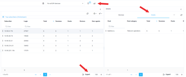 DPI exports CickStream, i.e all the HTTP/HTTPS subscriber requests on the Internet. The QoE module aggregates information for each IP (login, if used). The statistics include URL for the HTTP and domain name for the HTTPS. Steps to follow: