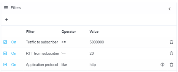 - set the mean speed to identify subscribers actively using the Internet and exceeding the the mean speed