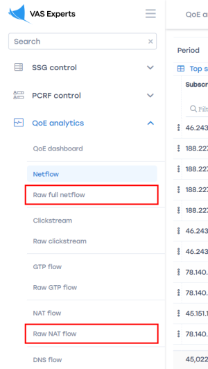 - Raw NAT Flow (default data retention — 2 hours), requires a QoE license