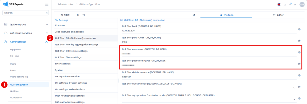 In DPIUI2, in the configuration section, set the username and password for connecting to the ClickHouse database