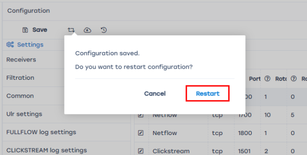 4. Save and restart the configuration.