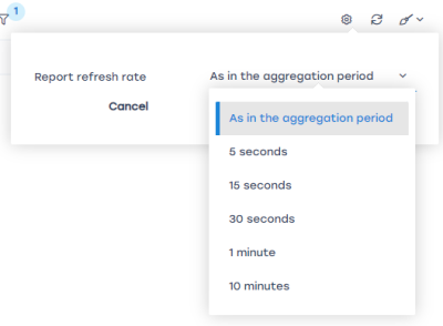 Allows adjusting the report update frequency (how often the graph refreshes and new rows appear).