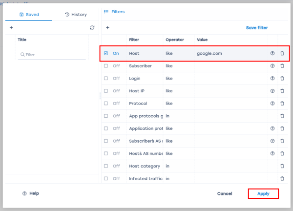 - Select the “Host” filter;