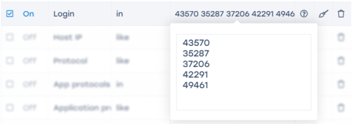 - Choose the operator “in CIDR’s”;