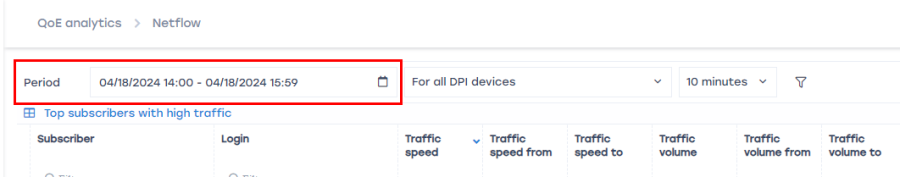 For filtering by a list of resources, follow the principle from Case 1. Searching for a subscriber in QoE → Subscriber list.
