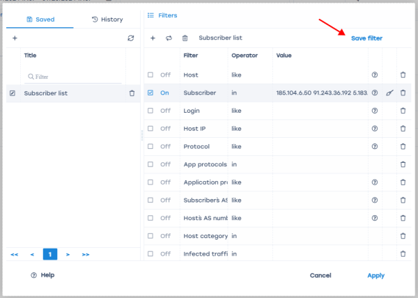 - Fill in the desired filters and mark them as enabled. Examples: Description and usage cases